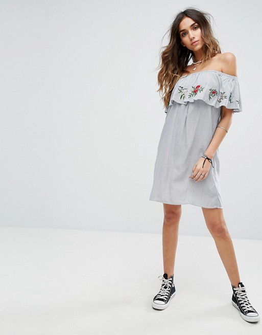 Pimkie Embroidered Bardot Jersey Dress